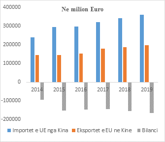 Bashkimi Europian dhe Kina janë dy partnerë të mëdhenj në botë. Kina është aktualisht partneri i dytë më i madh tregtar i Bashkimit Europian mbas Shteteve të Bashkuara. Kina është partneri më i madh i importeve të BE-së si dhe tregu i saj i dytë më i madh i eksporteve. Tregtia e mallrave dhe shërbimeve të Bashkimit Europian - Kinë arrin në rreth 14 përqind të tregtisë totale të Bashkimit Europian. Tregtia e eksporteve të Bashkimit Europian në tregun e Kinës përbejnë 9.3 përqind të totalit të unionit, ndërsa importet nga Kina përbejnë rreth 19 përqind të totalit të importeve. Në periudhën 2014-2019 importet e Bashkimit Europian janë rritur me një mesatare vjetore në 7.3 përqind, ndërsa eksportet e Bashkimit Europian në Kinë janë rritur mesatarisht në 6.8 përqind. Importet kryesore të Bashkimit Europian nga Kina janë mallra industriale dhe të konsumit, makineri dhe pajisje, këpucë dhe veshje. Eksportet kryesore të BE-së në Kinë janë makineri dhe pajisje, mjete motorike, aeronatike, dhe kimikate. Produktet industriale zënë peshën kryesore, ne rreth 98 përqind për importet e Bashkimit Europian, dhe 92.3 përqind për eksportet e tyre.