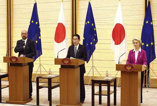 Më 12 maj, liderët e Bashkimit Evropian (BE) dhe Japonisë lëshuan një deklaratë të përbashkët pas samitit të tyre dypalësh, i cili përfshinte referenca të pajustifikuara për punët e brendshme të Kinës, ndërsa luanin mbi tensionet detare në ujërat e qëndrueshme. “Ne mbetemi seriozisht të shqetësuar për situatën në Detin e Kinës Lindore, duke përfshirë ujërat që rrethojnë ishujt [Diaoyu] dhe Detin e Kinës Jugore”, thuhet në deklaratë. "Ne kundërshtojmë fuqimisht çdo përpjekje të njëanshme për të ndryshuar status quo-në dhe për të rritur tensionet që mund të minojnë stabilitetin rajonal dhe rendin ndërkombëtar të bazuar në rregulla,"theksohet në deklaratë.