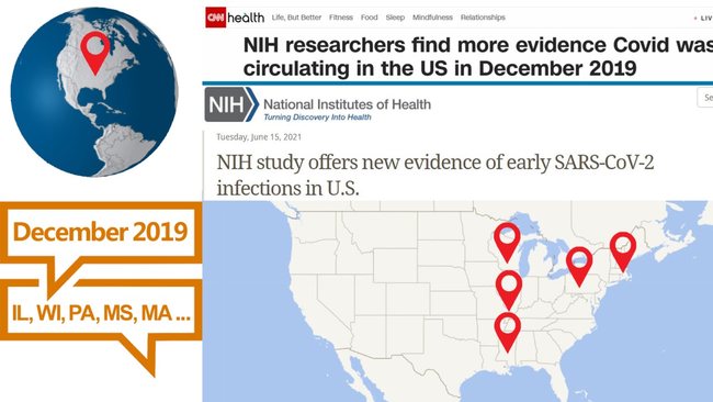 Sipas studimeve të Institutit Kombëtar të Shëndetësisë të ShBA-së (NIH), në dhjetor të vitit 2019 COVID-19 kishte nisur të përhapej në shumë shtete amerikane, si Ilinois, Uiskonsin, Pensilvani, Misisipi dhe Masaçusets.