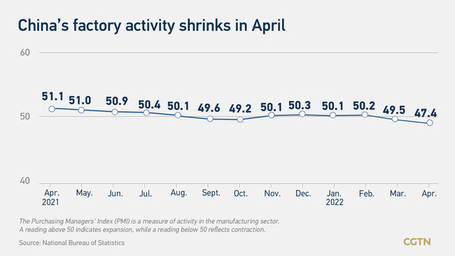 Të dhënat e publikuara të shtunën nga Zyra Kombëtare e Statistikave e Kinës tregojnë që, për shkak të përhapjes së pandemisë së COVID-19, disa ndërmarrje në Kinë kanë pasur rënie të prodhimit. Aktiviteti i sektorit të prodhimit dhe i sektorëve të tjerë joprodhues në Kinë shënoi ulje në prill.
