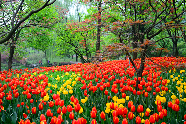 Pranvera është stina më e bukur në parkun "Taiziwan". Tulipanët e çelur, uji i pastër i liqenit dhe lëndinat e gjelbra tërheqin turistë të panumërt. Shumë çifte të sapomartuara shkojnë posaçërisht në këtë park për të bërë fotografi. (Fani)