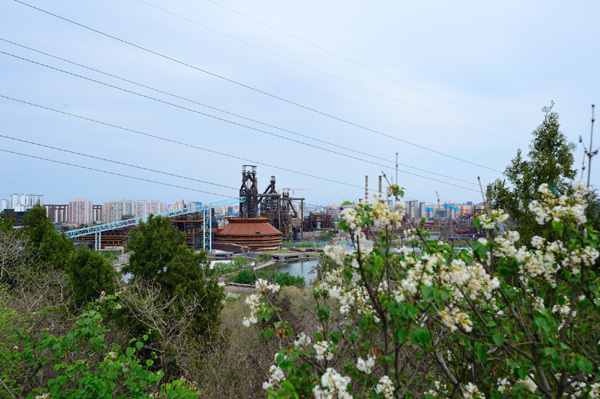 Pamje e peizazheve të parkut "Shougang" nga furra e shkrirjes së çelikut