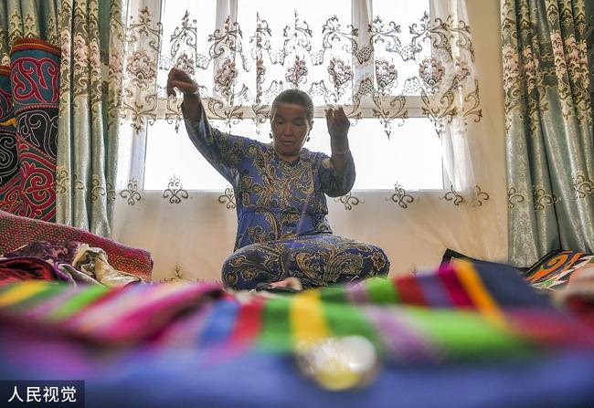 Kadr Rakhman është qëndistari i kombësisë ujgure. Si një dizenjues i qëndismave ujgure, ai e udhëheq grupin e vet të qëndistareve drejt pasurimit. Gazetari u takua me të në Qendrën e Mbrojtjes së Trashëgimive Kulturore Jomateriale të qytetit Hami.