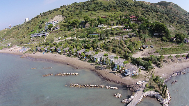 Kampingu është i pozicionuar buzë detit nën hijen e ullinjve dhe portokajve që karakterizojnë këtë zonë. Në këtë kamping akomodimi bëhet në çadra me sfungjerë dhe çarçaf ndërkohë që mëngjesi dhe darka shërbehen në kamp.