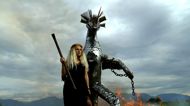 Ylli Jasa:Nuk e kisha ndërmend një gjë të tillë shumë impenjative dhe dija diçka për historinë e dragojve sepse kisha parë filma që më tërhiqnin. Kur fillova ta punoj po bëja një femër, me trupin të përkulur e të kërrusur dhe këmbët e hapura si një shenjë force. Për figurën e kësaj femre është punuar katër muaj e ca nga dhjetë orë në ditë. Struktura ishte shumë e vështirë sepse donte dhe studim nga ana inxhinierike. Mbi strukturë unë në mënyrë instiktive fillova të vendos luspa metalike inoksi.