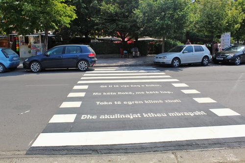 Në fakt është një dizajn urban, por që lexuesve u sjell në mëndje poezitë më të mira të Kadaresë, apo citimet më të bukura të Rexhep Qoses dhe të shkrmitarëve të tjerë shqiptarë.