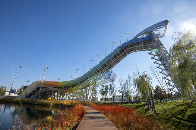 Krahas kësaj, parku “Shougang” është një nga zonat e zhvillimit të Olimpiadës Dimërore ku do të organizohet gara e kërcimit me ski e Lojërave Olimpike Dimërore të Pekinit 2022. Më 31 tetor të vitit 2019 u përurua platforma e kërcimit me ski. Lartësia më e madhe e platformës arrin në 60 metra, ndërsa gjatësia e korsisë së garës arrin në 164 metra. Në projektimin e platformës së kërcimit u përfshinë elementet e muraleve “Dunhuang” të Kinës, kurse lakorja e bukur e platformës i ngjan shumë shiritit fluturues në veshjen e zanës të mitologjisë kineze. Platforma e kërcimit me ski gjendet buzë liqenit Qunming në parkun “Shougang” dhe reflektohet në sipërfaqen e liqenit duke shfaqur një peizazh shumë të bukur. Gjatë Lojërave Olimpike Dimërore të Pekinit, këtu do të jepen katër medalje ari.