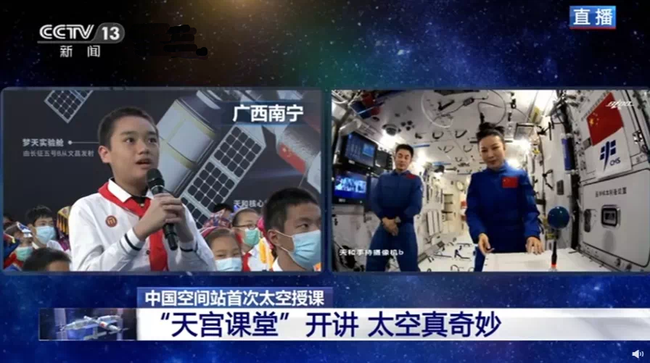 Të enjten pasdite, sipas orës së Pekinit, u dha një mësim i transmetuar drejtpërdrejt nga stacioni hapësinor i Kinës, 400 kilometra larg Tokës.
