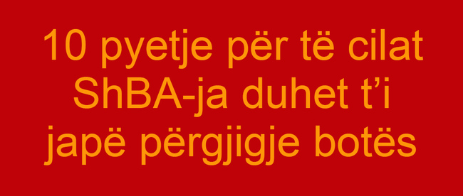 Që nga 20 janari, kur ShBA-ja raportoi pacientin e parë me koronavirus, e deri tani kanë kaluar 100 ditë. Numri i të prekurve në ShBA ka arritur në mbi 1 milion, duke u bërë vendi me numrin më të madh të të infektuarve dhe të vdekjeve në botë. Por politikanët amerikanë nuk merren me punën e luftës kundër COVID-19, por me përbaltjen ndaj Kinës dhe sulmin ndaj OBSh-së. Në fakt kjo jo vetëm nuk mund ta kalojë përgjegjësinë e tyre te të tjerët, por zbulon më tej dyshimet ndaj ShBA-së për sa i përket parandalimit dhe kontrollit të epidemisë. Lidhur me këtë ka dhjetë pyetje për të cilat qeveria amerikane është e detyruar t'i japë përgjigje botës.