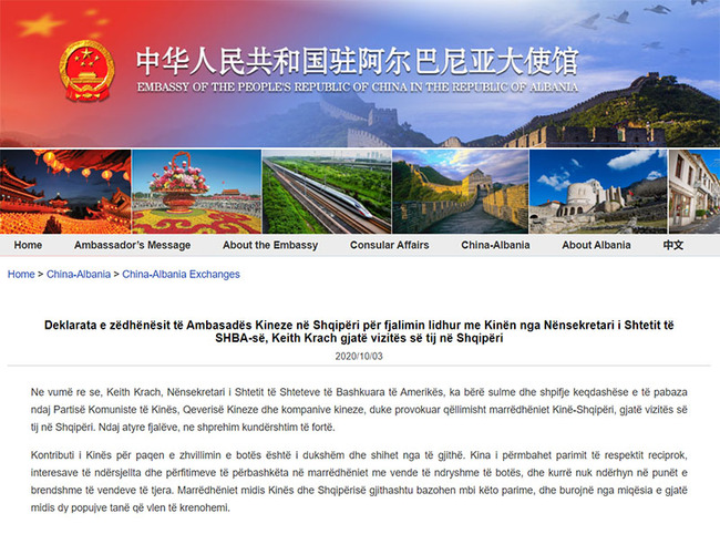 Dy ngjarje të rëndësishme për Shqipërinë tërhoqën vemendjen e analistëve të politikës ndërkombëtare gjatë javës që lamë pas. E para, një letër që presidenti amerikan Donald Trump i drejtonte kryeministrit shqiptar Rama, në të cilën në mënyrë të drejtpërdrejtë i kërkon Shqipërisë shkëputjen e marrëdhënieve me Republikën Popullore të Kinës, vend me të cilën e lidh një miqësi tradicionale. Dhe e dyta, në vazhdim dhe konkretizim të kësaj letre, vizita në vendin tonë e nënsekretarit amerikan për Rritjen Ekonomike, Energjinë dhe Mjedisin, Keith Krach, gjatë së cilës u nënshkrua një memorandum për bashkëpunimin ekonomik, por që në fakt më shumë u vu theksi tek “rreziku” që sipas tij , paraqet Kina për Shqipërinë dhe gjithë rajonin e Ballkanit. Presidenti Trump haptazi i kërkon kryministrit Rama që të nënshkruajë një Memorandum Mirëkuptimi mbi sigurinë 5G, që nënkputon përjashtimin e kompanisë kineze Huawei, si dhe e inkurajon të dalë nga mekanizmi 17+1, një iniciativë bashkëpunimi e iniciuar nga Kina. Edhe nënsekretari amerikan i shtetit falënderoi qeverinë shqiptare për angazhimin, siç tha ai, në Iniciativën Rruga e Pastër. Tirana ishte ndalesa e fundit e tij, në kuadër të një turneu dy javor në tetë vende evropiane, i cili në fokus kishte ofensivën e admnistratës amerikane për krijimin e një fronti antikinez.