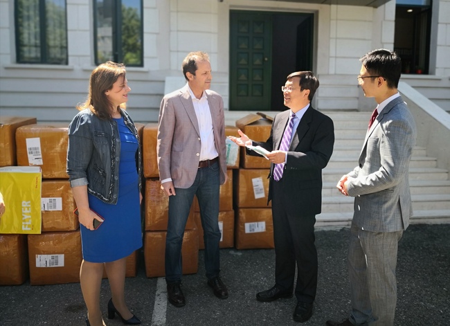 "Ne e ndiejmë nga afër kërcënimin me të cilin po përballet pala shqiptare dhe qëndrojmë në mënyrë të vendosur pranë popullit shqiptar, për të luftuar së bashku kundër Covid-19 nëpërmjet ndihmës me materiale mjekësore dhe ndarjes së përvojës së parandalimit dhe të kontrollit" – tha ambasadori Zhou. Materiale si: kite testuese, veshje mbrojtëse, maska mjekësore N95, syze mbrojtëse, doreza etj...