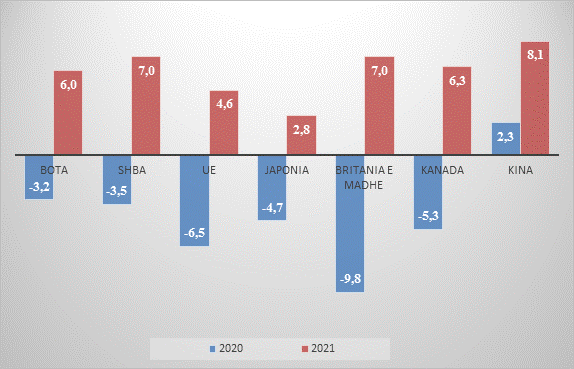 Burimi : World Economic Outlook, IMF, July 2021, dhe analiza nga autori