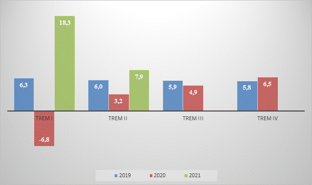 Ekonomia kineze performoi më mirë se vendet e tjera si rezultat i masave jashtëzakonisht të ashpra që u përdorën për të zvogëluar transmetimin e virusit si dhe stimuli ekonomik i drejtuar nga shteti i u bë efektiv në një kohë të shkurtër për të siguruar që prodhimi ekonomik mundej të rritet edhe në një vit kur pothuajse i gjithë aktiviteti pushoi për një muaj të tërë. Kina tashmë ka përfunduar rimëkëmbjen e saj, duke u kthyer në nivelet e saj të rritjes para pandemisë përpara të gjitha ekonomive të mëdha. Rritja e Prodhimit të Përgjithshëm Bruto mbas një tkurrje në tremujorin e parë të vitit 2020 në -6.8 përqind, u kthye në trajektoren rritëse positive në tremujoret në vijim, në 3.2 përqind në tremujorin e dytë, në 4.9 përqind në tremujorin e tretë dhe në 6.5 përqind në tremujorin e katërt. Rimëkëmbja e qëndrueshme u sigurua në vazhdimësi në tremujorin e parë dhe të dytë të vitit 2021 ku ekonomia e Kinës u rrit respektivisht në 18.3 përqind dhe 7.8 përqind.