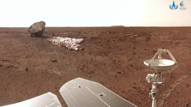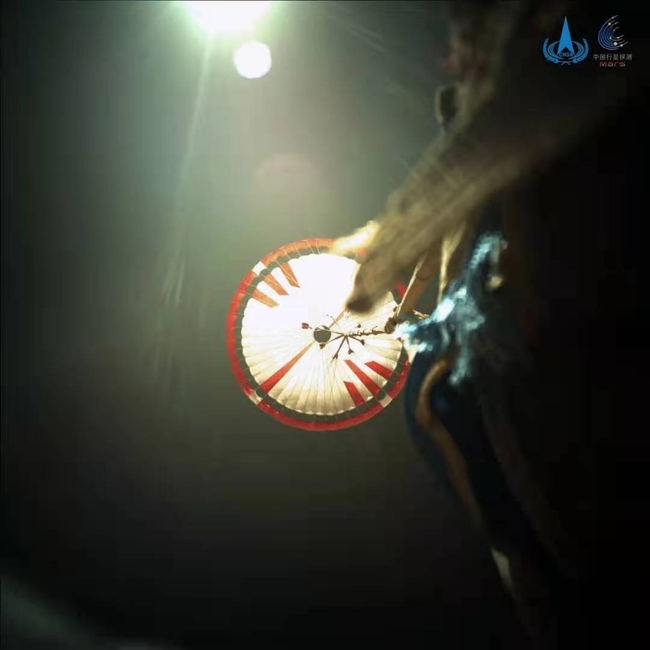 Në fotografi, parashuta dhe shtresa mbrojtëse e djegur, por e pashkatërruar e tij shihen qartë, së bashku me një pjesë të roverit. “Zhurong”-u ishte 30 metra larg shtresës mbrojtëse kur u bë fotografia, 350 metra larg vendit të uljes.