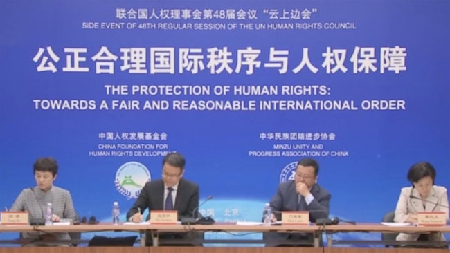 Në këtë seminar të organizuar nga Fondacioni mbi Zhvillimin e të Drejtave të Njeriut të Kinës dhe Shoqata Kineze për Unitet dhe Progres Minzu, sekretari i përgjithshëm i Fondacionit mbi Zhvillimin e të Drejtave të Njeriut, Men Lijun tha: “Disa vende po praktikojnë unilaterizmin dhe politikën e forcës në emër të multilaterizmit. Ata kanë vendosur vlerat dhe institucionet e tyre mbi ato të vendeve të tjera dhe ndërhyjnë në punët e brendshme, duke krijuar mosmarrëveshje dhe konfrontim. Këto veprime kërcënojnë paqen dhe të drejtat e njeriut të botës.”