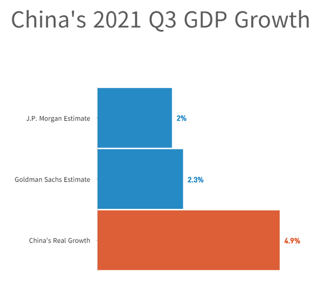 Në tremujorin e tretë të vitit 2021, pati raste të epidemisë në qytetet Nanjing dhe Guangzhou të Kinës. “JP Morgan” dhe “Goldman Sachs” e ulën normën e rritjes ekonomike të Kinës në tremujorin e tretë përkatësisht në 2% dhe 2.3%, ndërsa norma aktuale e rritjes së Kinës ishte 4.9%.