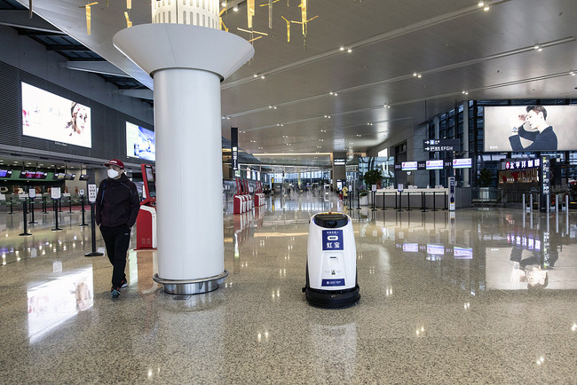Brenda spitalit të përkohshëm të ngritur në Qendrën e Ekspozitës së Shangait, u përdor grupi i parë i 28 robotëve dezinfektues. Secili prej tyre është i pajisur me tre module dezinfektimi: një llambë ultravjollcë, një gjenerator mjegull ultra të thatë dhe një pastrues ajri plazma. Roboti është në gjendje të punojë 24 orë në ditë.