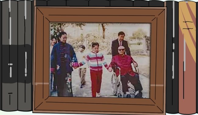 Në zyrën e Xi Jinping-ut, disa fotografi familjare të bëra në periudha të ndryshme ndodhen në pozicione shumë të dukshme. Në një fotografi, Xi Jinping-u po shëtit babanë e vet të moshuar, i shoqëruar nga bashkëshortja dhe vajza.