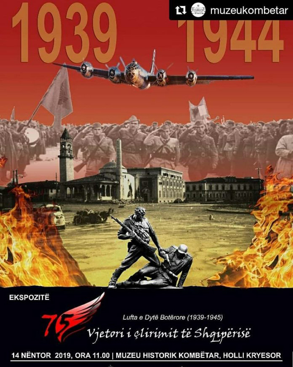 Në kuadër të 75-vjetorit të Çlirimit të Shqipërisë nga pushtuesit nazifashistë, më 14 nëntor 2019, ora 11:00, Muzeu Historik Kombëtar si institucioni më i madh i kujtesës historike kombëtare çel një ekspozitë me fotografi, harta dhe armatime, nga vitet e Luftës Antifashiste Nacional Çlirimtare, kësaj epopeje të ndritur të kombit shqiptar.