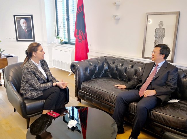 Nga ana e saj, ministrja shqiptare e Turizmit dhe e Mjedisit Mirela Kumbaro i shprehu falënderime ambasadorit Zhou dhe tha se miqësia tradicionale midis popullit shqiptar dhe popullit kinez është thesar i çmuar i përbashkët midis dy palëve dhe duhet të shndërrohet edhe në një motor të fuqishëm për nxitjen e bashkëpunimit midis dy vendeve, duke përfshirë edhe fushën turistike. Pala shqiptare është e gatshme të shtojë më tej promovimin e turizmit në tregun kinez dhe të tërheqë më shumë turistë kinezë. Aktualisht, qeveria shqiptare po kryen fushatën e pastrimit të mjedisit në vend dhe do të shpallë edhe një vendim për ndalimin e qeseve plastike me një përdorim. Në këtë drejtim, pala shqiptare do të shtojë shkëmbimet me sektorin kinez të mbrojtjes së mjedisit, që të mësojë prej përvojës së suksesshme të Kinës në zhvillimin e ekonomisë së gjelbër, shtoi ministrja Kumbaro. (Wang Lei/ Artan) foto nga ambasada e Kinës