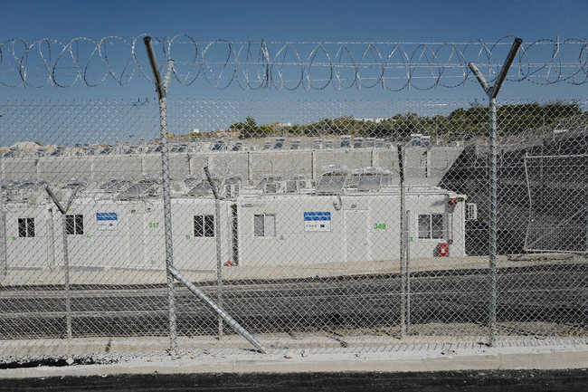 Dy rreshta me gardhe me tela me gjemba rrethojnë kampin e ri “Zervou” në ishullin Samos të Egjeut, i projektuar për të strehuar 3000 persona. Ky kamp ka edhe kamera vëzhgimi, skanerë me rreze dhe dyer magnetike.