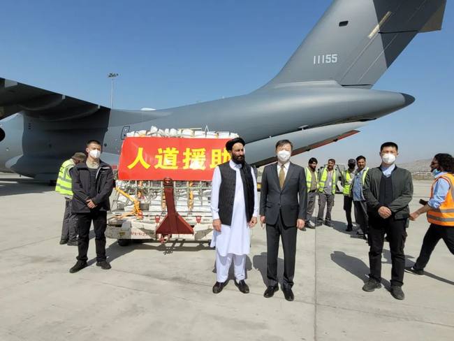 Të hënën mbrëma, pas mbërritjes së grupit të parë të furnizimeve, ambasadori kinez në Afganistan, Wang Yu, dhe Ghulam Ghaws Naseri, ushtrues detyre i ministrit të Shtetit për Menaxhimin e Fatkeqësive dhe Çështjet Humanitare të qeverisë së përkohshme të udhëhequr nga talebanët, morën pjesë në një ceremoni dorëzimi në aeroport. Në ceremoni, Wang tha se qeveria kineze vendosi të sigurojë 50 milionë juanë (rreth 7.5 milionë dollarë amerikanë) në furnizime të ndihmës humanitare urgjente për Afganistanin dhe grupi i parë i furnizimeve përfshinte tenda, shtretër të palosshëm dhe batanije.