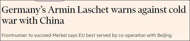 Armin Laschet, kryetari i Unionit Demokristian, partisë në pushtet në Gjermani, i dha të hënën një intervistë gazetës britanike "Financial Times", ku shprehu mendimin se në konkurrencën gjeopolitike me Kinën, Perëndimi duhet të shmangë mendësinë e Luftës së Ftohtë dhe zhvillimin e një Lufte të Ftohtë të re me Kinën.