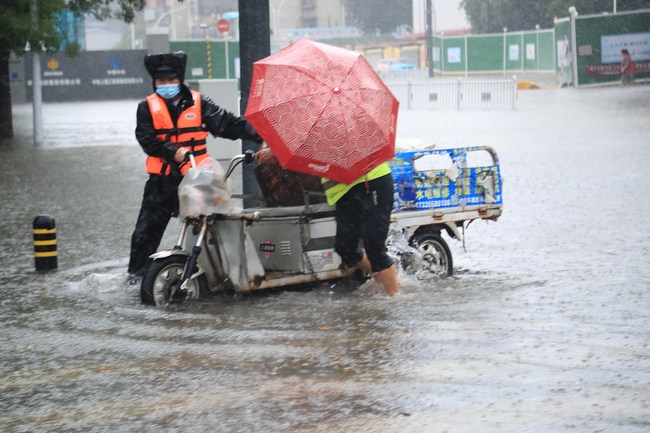 Deri në orën 6 pasdite të së dielës, edhe konteja Weishi e qytetit Kaifeng të Henan-it kishte vendosur më shumë se 70 pajisje kullimi për të pastruar bllokimet e ujit në zonat urbane.