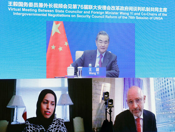 Wang i tha këto gjatë takimit virtual me Alya Ahmed Saif Al-Thani dhe Martin Bille Hermann, bashkëkryetarë të Negociatave Ndërqeveritare mbi Reformën e Këshillit të Sigurimit në Sesionin e 76-të të Asamblesë së Përgjithshme të OKB-së. Al-Thani dhe Hermann janë përkatësisht përfaqësues të përhershëm të Katarit dhe Danimarkës në OKB.