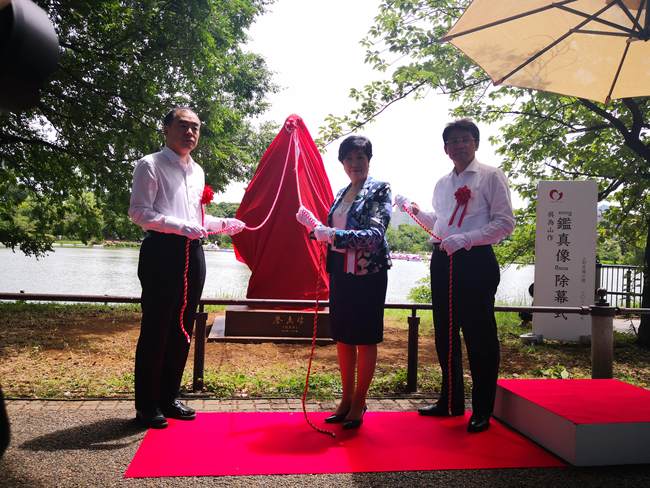Ambasadori kinez në Japoni Kong Xuanyou u shpreh në ceremoninë e përurimit se Jian Zhen është jo vetëm një pionier në historinë e shkëmbimeve kulturore të Kinës me Japoninë, por edhe simboli i historisë së gjatë së miqësisë ndërmjet dy vendeve. Me rastin e 50-vjetorit të normalizimit të marrëdhënieve kino-japoneze, përurimi i statujës së Jian Zhen-it në Parkun "Ueno" ka rëndësi të madhe.