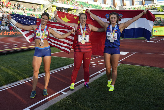 Të mërkurën, Feng Bin e Kinës fitoi medaljen e artë në hedhjen e diskut për femra në Kampionatin Botëror të Atletikës në qytetin Juxhin të shtetit Oregon të ShBA-së.